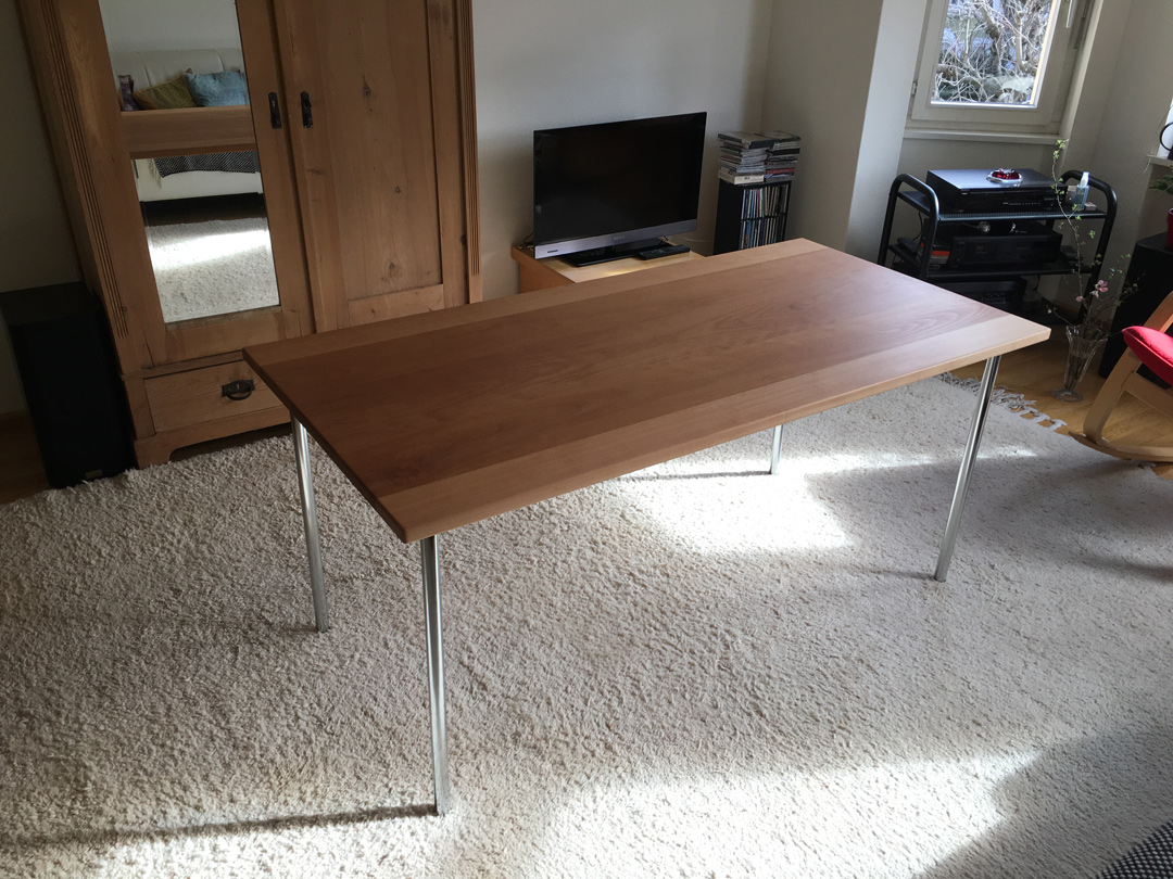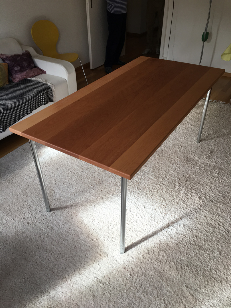 Tisch Tischblatt aus Buchenholz mit Chrombeinen