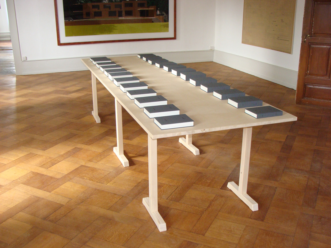 Tisch für Ausstellung Tischblatt aus Tischleplatte Füsse aus Fichtenholz
